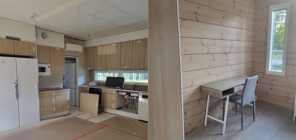 Kalusteita vaille valmis 11.9.2025 Lasten huoneisiin on kaapit asennettu, kylppärit viimeistelyä vaille valmiit, sekä viimeisimpänä meille on alkanut rakentua keittiöt! Niitä olemmekin jännityksellä odottaneet: yhteiset ruokahetket ovat meille tärkeitä. Ruoka on meille enemmän kuin vain ravintoa. Ruoka ja yhteiset ruokahetket ovat meille hoivan ja arvostuksen osoituksen väline. Tykkäämme kattaa lapsille kauniisti, tehdä toisinaan aamuvoileivät valmiiksi ja pistää parempaa pöytään. Totesimme, että uudetkin tilat sopivat hyvin brunsseillemme. Muutaman viikon päästä pääsemme kalustamaan taloa uusilla kalusteilla. Pysy kanavalla, tästä alkaa loppukiri!