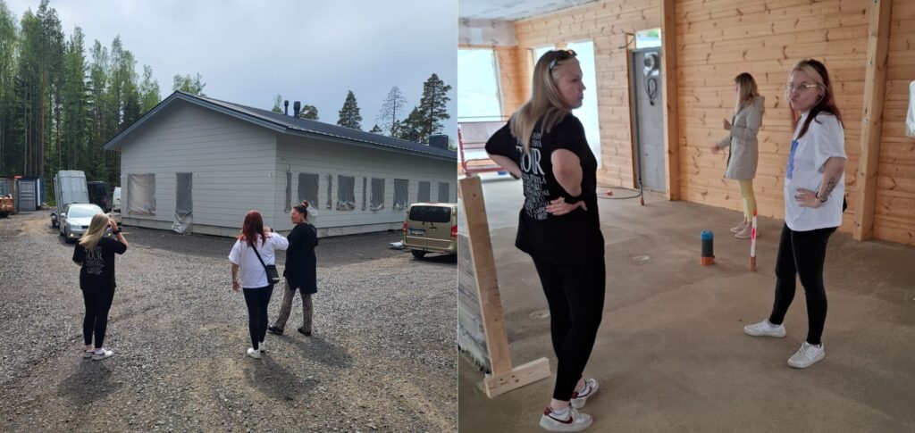 Kurkistus uusiin tiloihin 29.8.2025 Kierros talossa kertoi omaa tarinaansa. Lattiat olivat jo valmiina kauniin lämpimässä sävyssään ja vastapainona hirsiseinien karheus kuiskasi luonnon ja käsityön läsnäoloa. Valo virtasi suurista ikkunoista sisään korostaen tilojen avaruutta. Kuin talo olisi kertonut jo itse tarinaa lapsista, joiden arjen äänet täyttäisivät pian nämä huoneet. Talo ei kuitenkaan ole vain rakennus. Se on ympäristö, joka tukee lasten kasvua ja kuntoutumista. Ahvenlammen rannalla sijaitseva Lehtosara tarjoaa rauhaa ja luonnon läheisyyttä, elementtejä, jotka auttavat luomaan turvallisen ja kodinomaisen arjen. Luonto ympärillä on kuin lisätila, jossa voi hengittää sisään ja löytää uutta voimaa jokaiseen päivään. Meille tämä vierailu oli myös muistutus siitä, miksi teemme tätä työtä. Kun uudet tilat valmistuvat syksyn aikana, ne tarjoavat lapsille mahdollisuuden rakentaa omia tarinoitaan turvallisessa ympäristössä. Nykyaikaiset ja viihtyisät tilat sekä ammatillisesti osaava ja lämminhenkinen tiimi – siinä on lupaava uusi alku kasvulle ja nähdyksi tulemiselle. Kauniin kuvauksen tunnelmistamme kirjoittanut vastaava ohjaajamme Tiina Elomaa