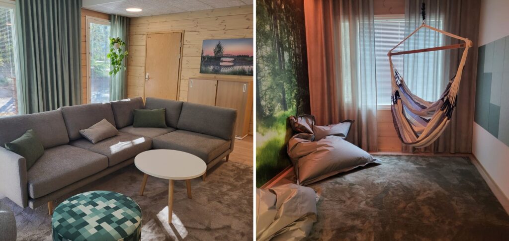 Kesän kuulumiset 6.8.2025 Kesän aikana uutta taloamme on rakennettu ahkerasti. Kävimme nuorten kanssa tutustumassa uusiin tiloihin ja syömässä jätskit rannassa. Tuntui, että nuorten olo muuton suhteen keveni, ja uudet tilat herättivät positiivisia tunteita. Jännitimme etukäteen hieman, millaisen vastaanoton meitä työntekijöitä ihastuttaneet hirsiseinät saavat nuorten keskuudessa, mutta turhaan! Nuoret pitivät erityisesti niistä, ja yksi nuorista varasikin jo itselleen huoneen, missä on kaksi hirsiseinää. Yksikkö ulkoa päin ja näkymä nuoren huoneesta. Yksikön olohuone. Tästä on kevyt olo jatkaa muuttoa kohti!
