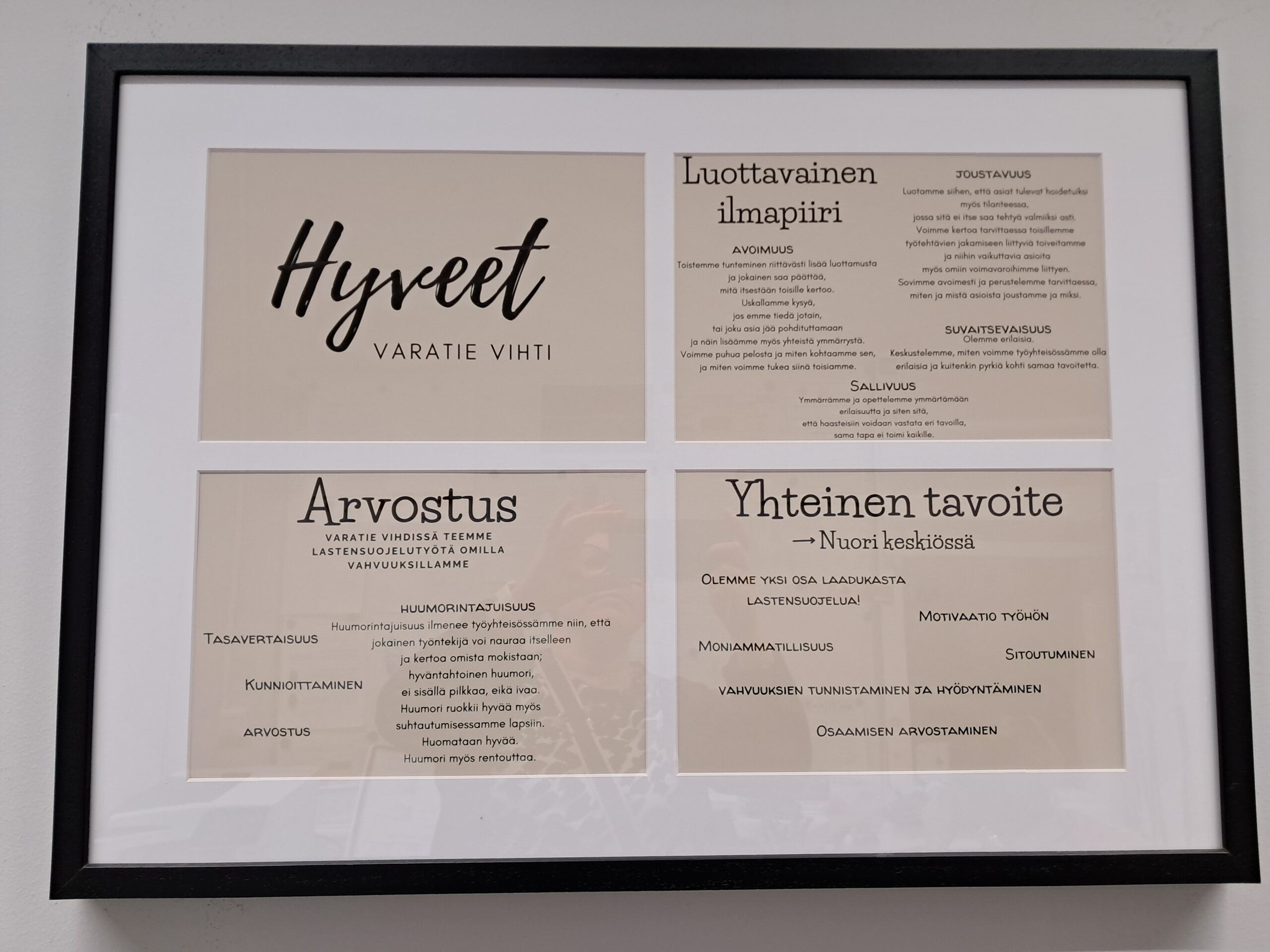 Varatie Vihdin arjen käytännöissä näkyy vanhempien arvostaminen ja vanhempien osallistuminen. Tämä vaatii tahtoa ja sitkeyttä niin meiltä, kuin myös vanhemmiltakin.”
